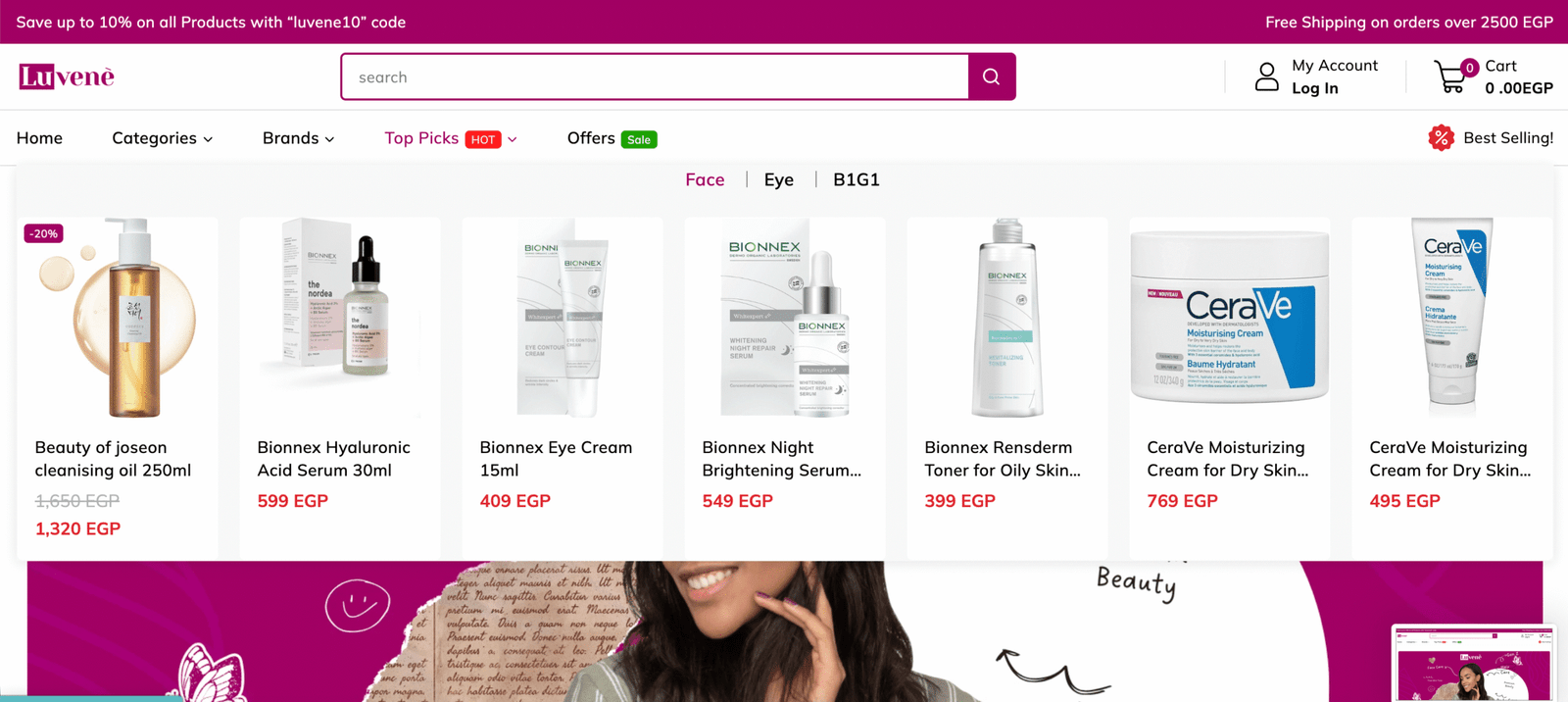 Luvene Beauty is a large-scale eCommerce platform specializing in beauty products in Egypt, with a growing global presence. The main goal was to build a high-performance online store that is feature-rich, user-friendly. — all aimed at enhancing the shopping experience for a diverse customer base.